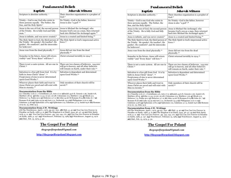 Baptist and Jehovah Witness Comparison x2 PDF Good Works Trinity
