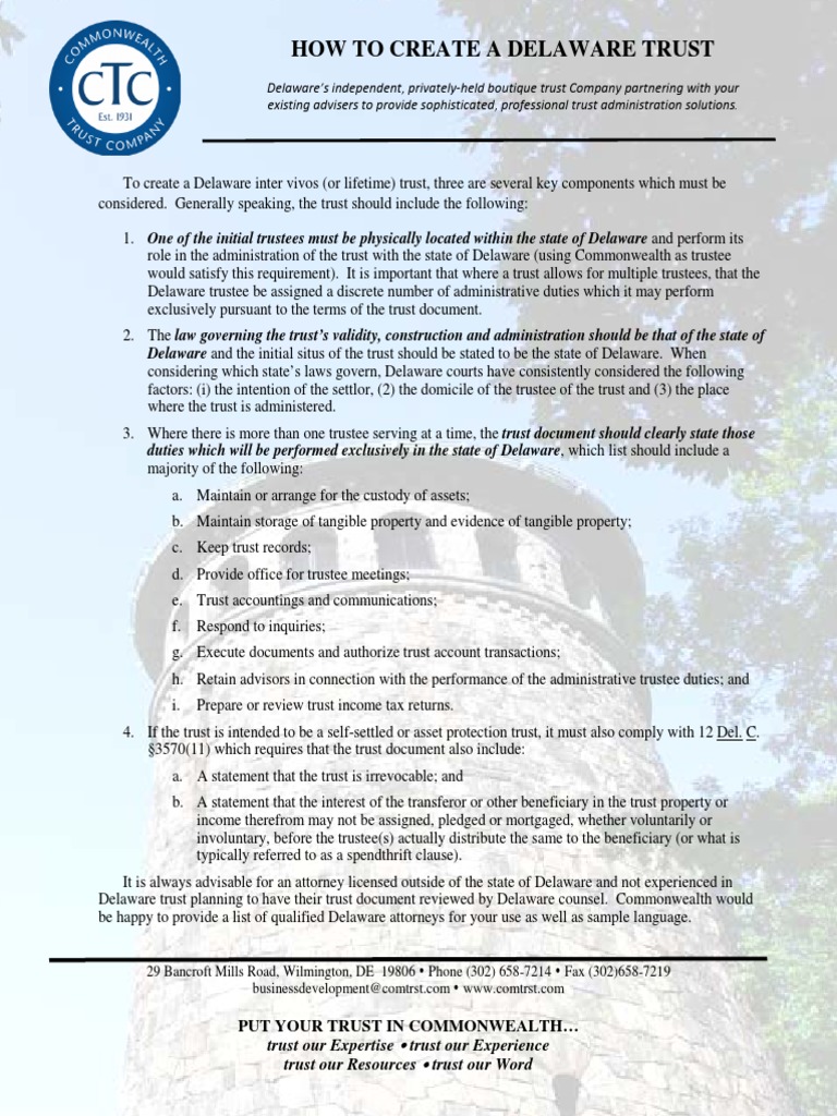 How to Form a Delaware Trust Trust Law Trustee