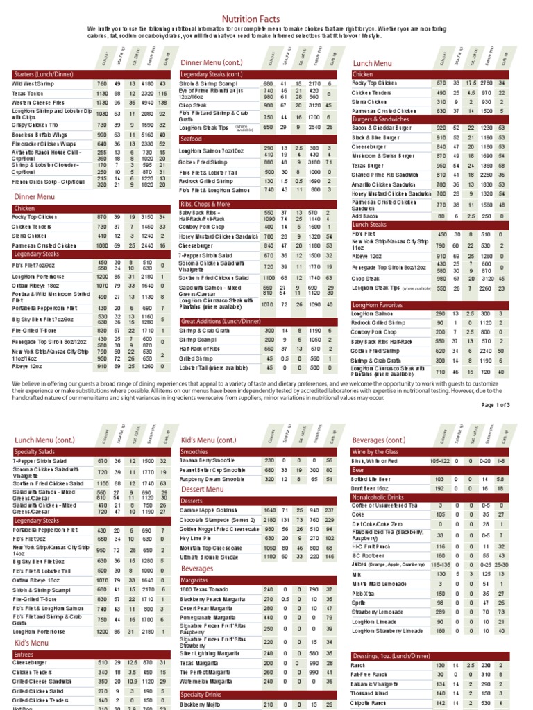 Longhorn Restaurant Nutrition Facts Besto Blog