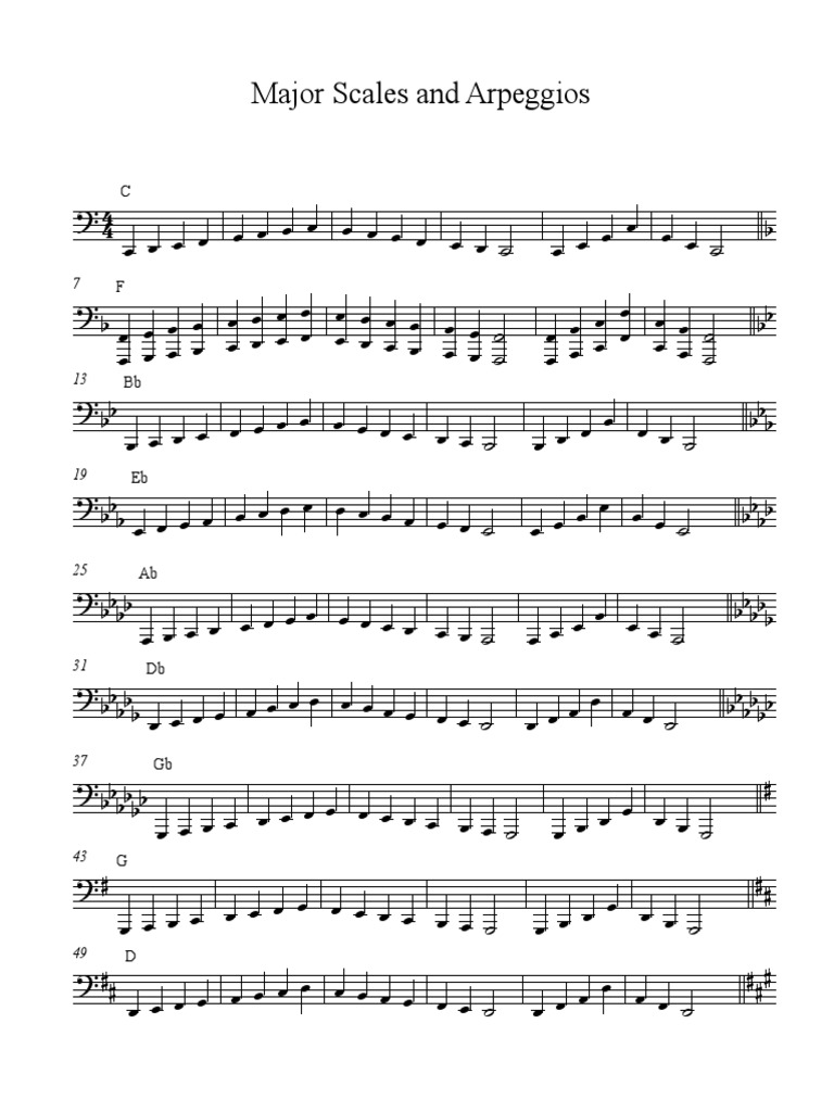 12 Major Scales Tuba PDF Musical Compositions Elements Of Music