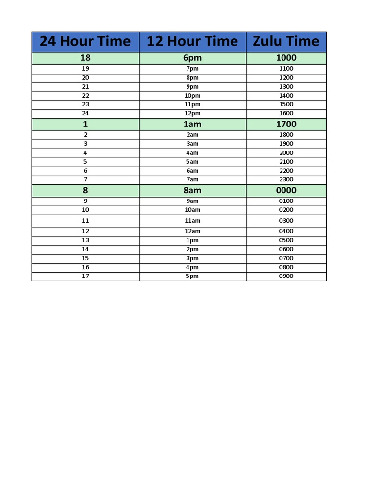 Zulu Time Chart - Zulu time is the aviation and military name for greenwich mean time (gmt), which is the current time at 0 degrees longitude. * 0000 and 2400 are interchangeable. Zulu time to local time conversions can also be calculated for dates and time in the future with adjustments for daylight saving time. By following the simple steps outlined in this guide, you can confidently convert local time to zulu time and ensure precise coordination in your activities. Web current local time in utc. This corresponds to the current time in greenwich, england — a section of london. Web zulu time to your local time and worldwide time conversions, conversion time chart between zulu time and local time. Web whether you’re involved in aviation, military operations, or global communication, understanding and using zulu time efficiently is crucial. Web what is zulu time? And are they all three the same? It’s also sometimes referred to as coordinated universal time (utc). See a clock with the accurate time and find out where it is observed. Web utc (zulu) time conversion chart. Web af mars uses zulu time or coordinated universal time (utc) when communicating time in all traffic: Web current local time in “zulu” military time. Web utc, gmt, and zulu time are used on weather reports and maps, but what does each mean? 2400 is associated with the date of the day ending, 0000 with the day just starting. And are they all three the same? This corresponds to the current time in greenwich, england — a section of london. Web the zulu time converter enables you to convert local time to zulu or gmt time. And are they all three the same? * 0000 and 2400 are interchangeable. Web current local time in “zulu” military time. Web the zulu time converter enables you to convert local time to zulu or gmt time. Web current local time in utc. 2400 is associated with the date of the day ending, 0000 with the day just starting. Web zulu time to your local time and worldwide time conversions, conversion time chart between zulu time and local time. Web current local time in “zulu” military time. See a clock with the accurate time and find out where it is observed. Web whether. Web utc, gmt, and zulu time are used on weather reports and maps, but what does each mean? To make the conversion to your local time, see the chart below. * 0000 and 2400 are interchangeable. Web current local time in utc. Web zulu time to your local time and worldwide time conversions, conversion time chart between zulu time and. Web whether you’re involved in aviation, military operations, or global communication, understanding and using zulu time efficiently is crucial. And are they all three the same? By following the simple steps outlined in this guide, you can confidently convert local time to zulu time and ensure precise coordination in your activities. It’s also sometimes referred to as coordinated universal time. Web current local time in “zulu” military time. 2400 is associated with the date of the day ending, 0000 with the day just starting. See a clock with the accurate time and find out where it is observed. And are they all three the same? To make the conversion to your local time, see the chart below. 2400 is associated with the date of the day ending, 0000 with the day just starting. Web the zulu time converter enables you to convert local time to zulu or gmt time. Web what is zulu time? Zulu time to local time conversions can also be calculated for dates and time in the future with adjustments for daylight saving time.. Web utc, gmt, and zulu time are used on weather reports and maps, but what does each mean? It’s also sometimes referred to as coordinated universal time (utc). 2400 is associated with the date of the day ending, 0000 with the day just starting. And are they all three the same? This corresponds to the current time in greenwich, england. 2400 is associated with the date of the day ending, 0000 with the day just starting. Web utc (zulu) time conversion chart. Zulu time to local time conversions can also be calculated for dates and time in the future with adjustments for daylight saving time. It’s also sometimes referred to as coordinated universal time (utc). Web af mars uses zulu. Web what is zulu time? Web zulu time to your local time and worldwide time conversions, conversion time chart between zulu time and local time. Web utc, gmt, and zulu time are used on weather reports and maps, but what does each mean? See a clock with the accurate time and find out where it is observed. Web the zulu. Verbal, written, and radio messages both verbal and digital. It’s also sometimes referred to as coordinated universal time (utc). See a clock with the accurate time and find out where it is observed. Web utc, gmt, and zulu time are used on weather reports and maps, but what does each mean? This corresponds to the current time in greenwich, england. Web utc, gmt, and zulu time are used on weather reports and maps, but what does each mean? Verbal, written, and radio messages both verbal and digital. By following the simple steps outlined in this guide, you can confidently convert local time to zulu time and ensure precise coordination in your activities. Web the zulu time converter enables you to convert local time to zulu or gmt time. Web current local time in “zulu” military time. Web zulu time to your local time and worldwide time conversions, conversion time chart between zulu time and local time. Web what is zulu time? Web af mars uses zulu time or coordinated universal time (utc) when communicating time in all traffic: This corresponds to the current time in greenwich, england — a section of london. 2400 is associated with the date of the day ending, 0000 with the day just starting. To make the conversion to your local time, see the chart below. Zulu time is the aviation and military name for greenwich mean time (gmt), which is the current time at 0 degrees longitude. Web utc (zulu) time 